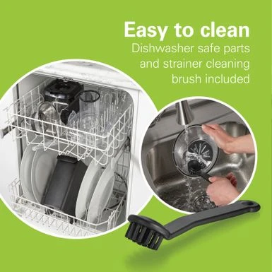 - Includes cleaning brush and dishwasher safe parts