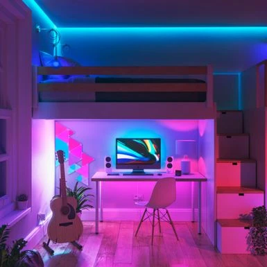 Create stunning backlit illumination in any room with this Thread and Matter-enabled smart color changing LED Lightstrip. Use manually with the attached Controller, pair directly to the Nanoleaf App with just Bluetooth, or connect to a smart home ecosystem by adding a Matter-compatible smart home hub and Thread Border Router to your setup. Open up the Features section below for more information.